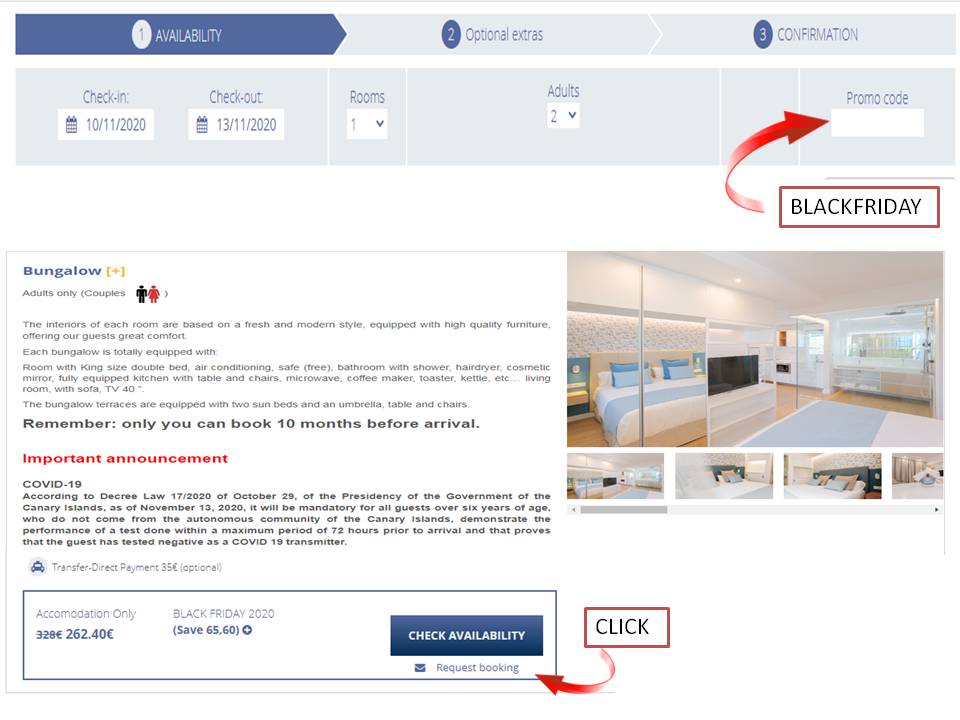 Select our website www.lamirageswingers.com, enter the dates you wish to stay, use the promotional code BLACKFRIDAY.